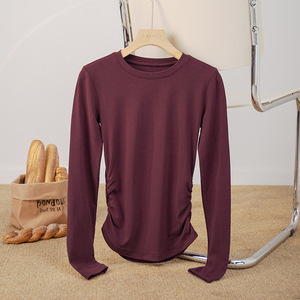 萝卜大叔桑蚕丝圆领T恤打底衫女上衣2025秋冬内搭外穿长袖针织衫