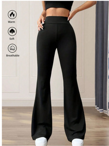 2025跨境欧美亚马逊新款纯色休闲高腰瑜伽长裤弹力运动微喇裤