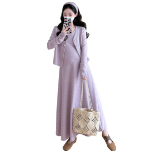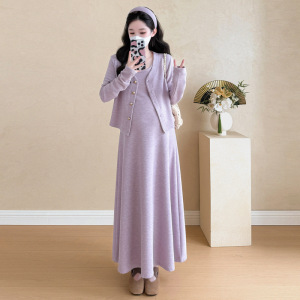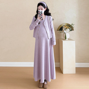 小香风孕妇套装裙2025新款秋装连衣裙孕期洋气华夫格针织裙两件套