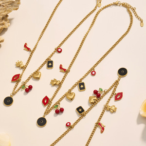梦幻 车厘子爱心小熊DIY多配件锁骨链镀18k真金欧美个性跨境饰品