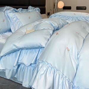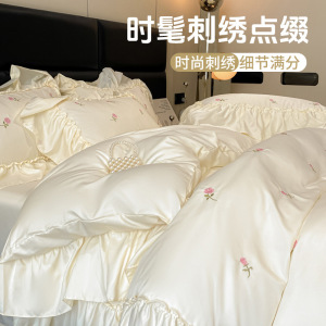 冰丝四件套轻奢高级感丝滑裸睡纯色简约网红水洗空调被