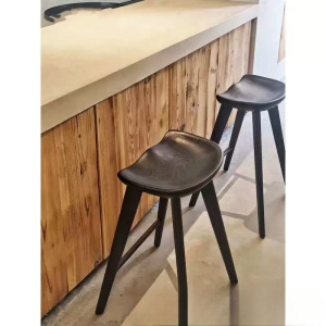 侘寂风实木椅家用高脚凳原木靠背休闲椅吧台简约酒吧登奶茶店客厅