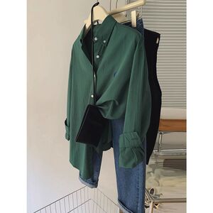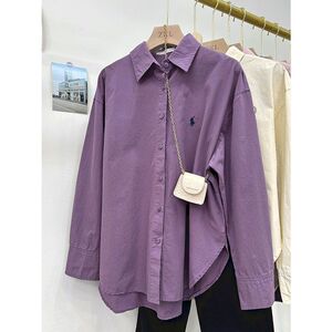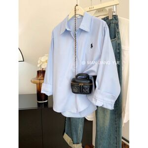 小马刺绣衬衫女宽松韩系简约高级设计感通勤衬衣时尚休闲长袖上衣