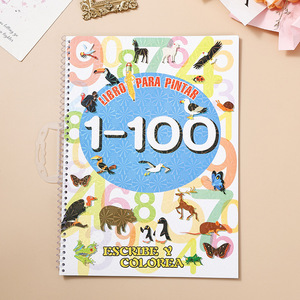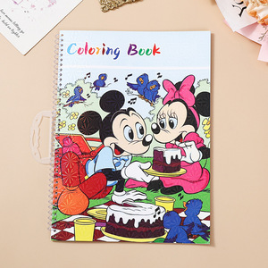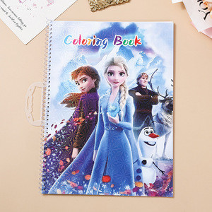 跨境英文版儿童水彩涂色本自带贴纸线圈手提益智 填色色 绘画本涂