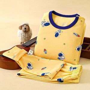 中大童秋衣秋裤无骨套装女孩纯棉莱宝宝打底内衣男童睡衣春秋冬