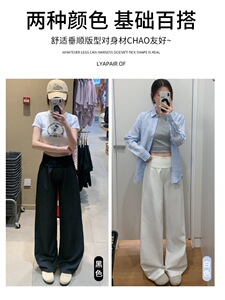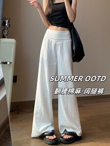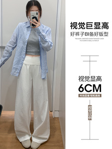 白色休闲阔腿裤子女秋季2025薄款百搭翻腰宽松显瘦垂感直筒拖地裤