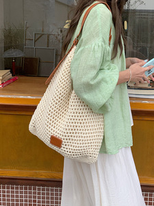 海边度假沙滩包编织2025新款时尚百搭镂空针织包大容量单肩腋下包
