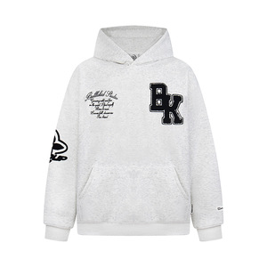 美式字母植绒刺绣连帽卫衣男女宽松秋季新款情侣街头潮牌休闲帽衫