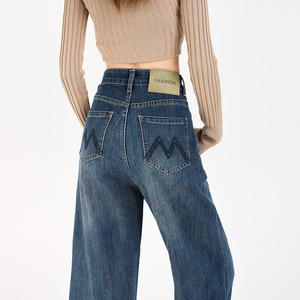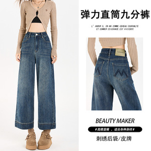 2025秋季新款复古弹力高腰刺绣九分牛仔裤女显瘦小个子直筒九分裤