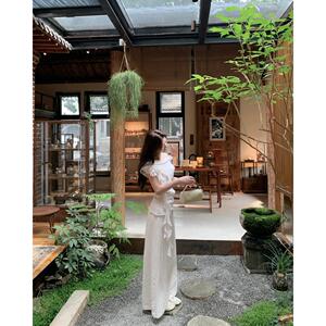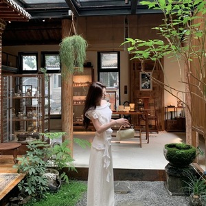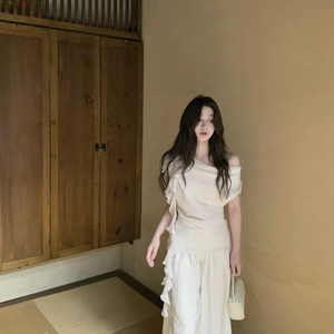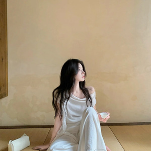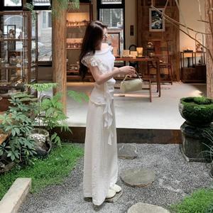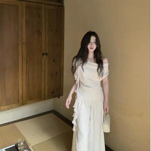 2025夏季新款韩系穿搭白色露肩短袖上衣搭配休闲裤时尚两件套装女