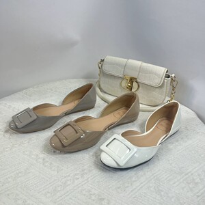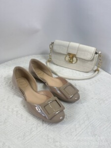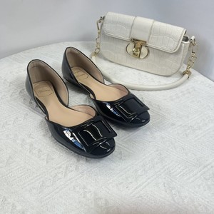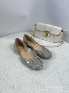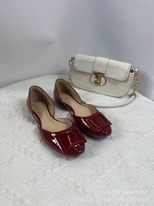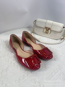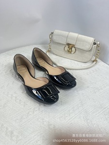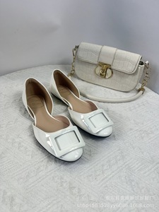 rv方扣中空单鞋职场通勤名媛淑女风浅口平底时装凉鞋漆皮低跟舒适
