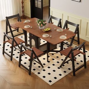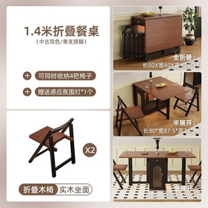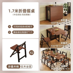 中古风实木折叠餐桌小户型可移动长方形隐形饭桌家用客厅法式复古