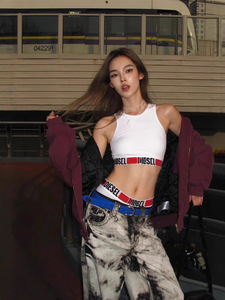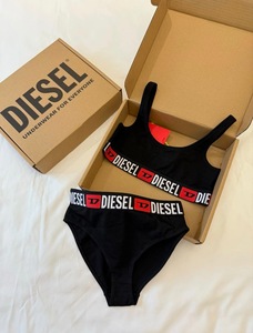 正确版 DI*SEL字母橡筋背心纯欲风辣妹运动居家文胸内衣套装女