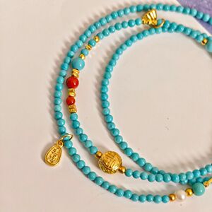 绿松石长款毛衣链蜜蜡南红串珠项链万能扣挂绳如意锁双钩多圈手链