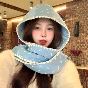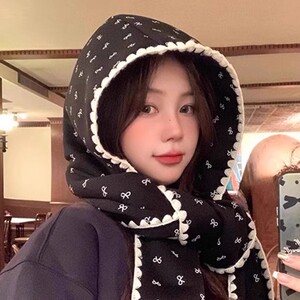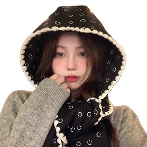 可爱笑脸帽子围巾一体女秋冬韩系百搭保暖连帽披肩亚马逊跨境现货