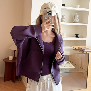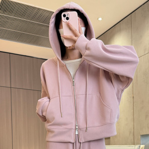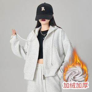 米白色连帽卫衣女初秋小个子韩版宽松显瘦上衣外套秋冬百搭上衣