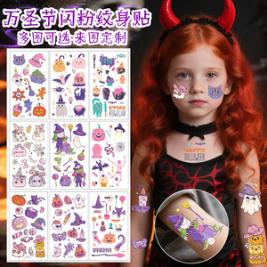 跨境新款闪粉卡通万圣节纹身贴纸高级感可爱闪光搞怪节日聚会脸贴