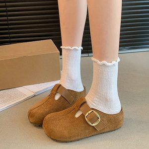 包头拖鞋女外穿2025年秋季新款复古懒人一脚蹬松糕厚底勃肯半拖鞋