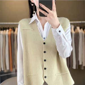V领针织开衫马甲女2025春秋新款西装马夹打底衫外穿宽松大码坎肩
