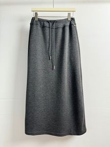 灰色绑带空气棉莫代尔面膜裙半身裙经典百搭中长款后开叉裙子女