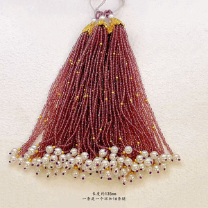 古风流苏天然尖晶石猫眼石玫红渐变色长穗子珍珠新年红结婚配饰