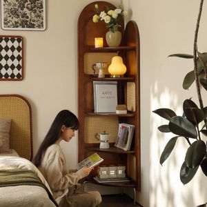 中古风角柜沙发转角置物架客厅复古墙角床头边柜子三角拐角落书架