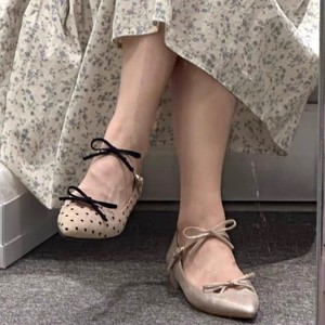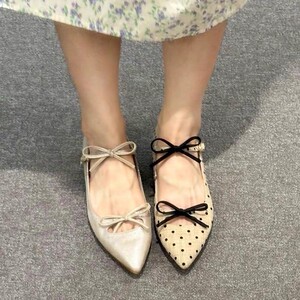 羊皮版~法式尖头蝴蝶结浅口单鞋女2025新款仙女风温柔平底玛丽珍