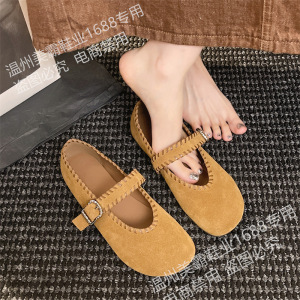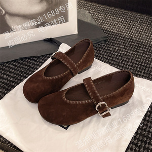 牛绒皮单鞋女2025秋季新款复古百搭真皮玛丽珍法式配裙子女鞋