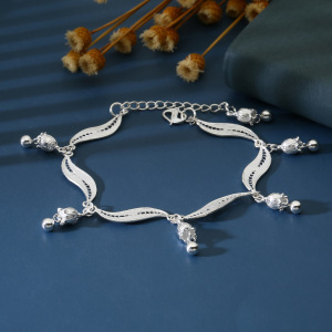 8499号足银990花丝铃兰花吊珠手链清新纯银精工高级抖音直播爆款