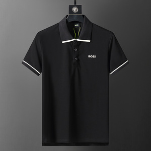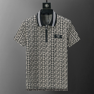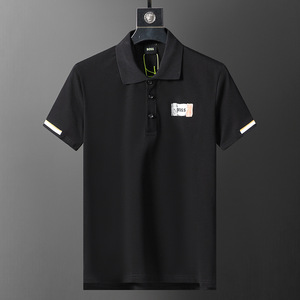 跨境潮牌外贸欧州站新款polo衫男士纯色商务休闲提花翻领短袖