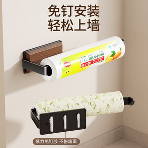 胡桃木厨房纸巾架免打孔橱柜用纸置物卷纸架保鲜膜吸油纸收纳挂架