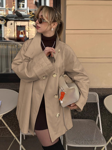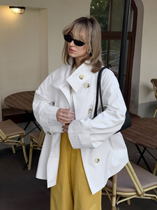 复古老钱风白色风衣外套女2025秋季优雅时尚翻领大衣长款外贸女装