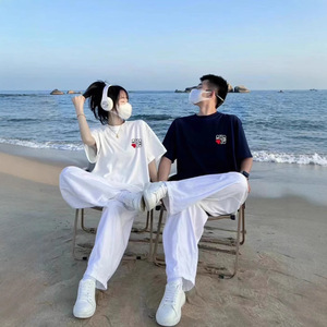 高版本罗家loe意威磊子同款经典刺绣小标男女情侣宽松套头短袖T恤