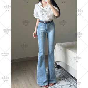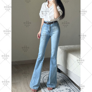 浅色高腰微喇牛仔裤女2025年秋季新款提臀显瘦显高弹力喇叭长裤