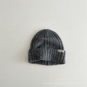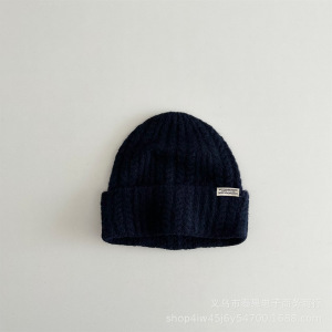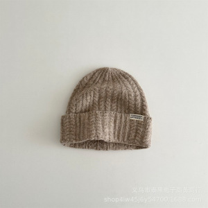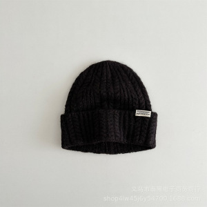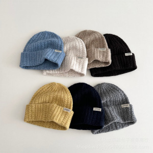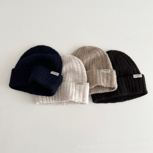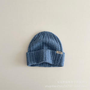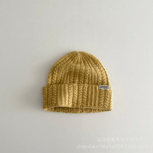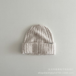 韩系儿童新款麦穗纹理毛线针织帽纯色简约卷边男童女童保暖套头帽