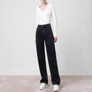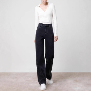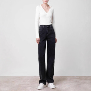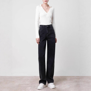 黑色高腰窄版阔腿牛仔裤女宽松显瘦2025早秋新款直筒硬挺拖地裤