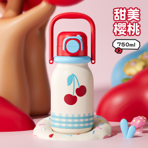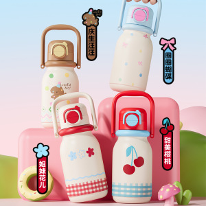 新款大容量保温杯316不锈钢双饮吸管杯带把手户外高颜值便携水杯