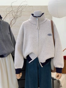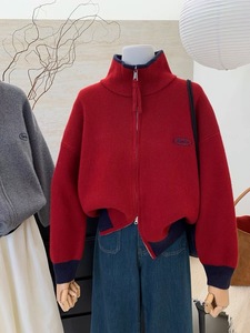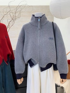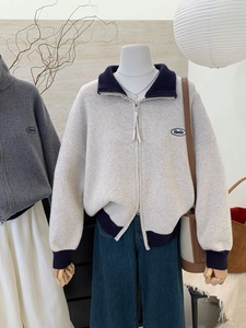 25年女装秋冬欧美跨境亚马逊热卖宽松针织纯色开衫毛衣拉链款长袖