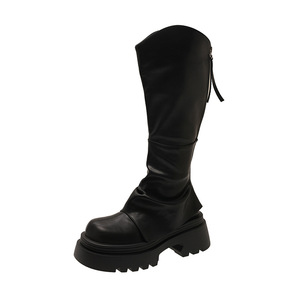 厚底长筒靴子女2025新款秋冬季显瘦高筒靴v口裤管靴堆堆靴骑士靴