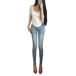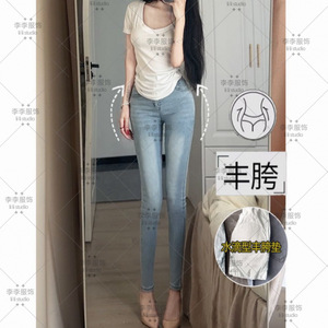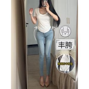 浅色丰胯牛仔裤女2025夏季新款韩系显瘦修身提臀弹力高腰小脚裤