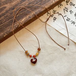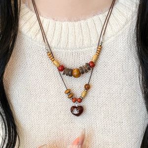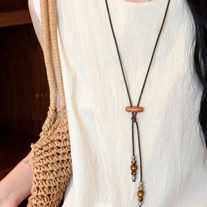 复古木质串珠吊坠项链女小众设计感民族风配饰时尚长款百搭毛衣链