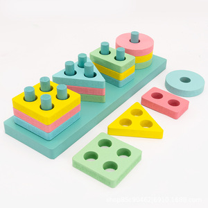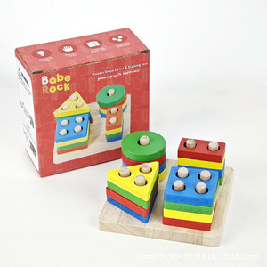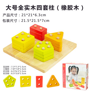 蒙氏早教几何套柱儿童大颗粒积木实木玩具幼儿园益智拼装多款式