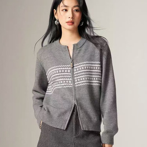 2025跨境秋季新品日系慵懒风复古拉链宽松针织开衫上衣毛衣外套女