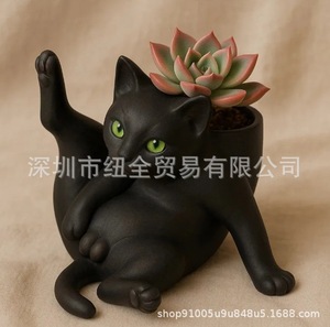 跨境新品Fun Grooming Cat Planter 趣味猫咪美容花盆 桌面摆件