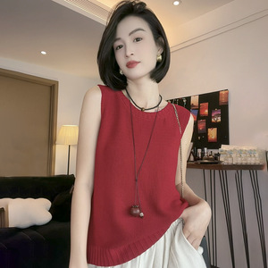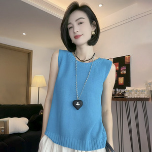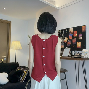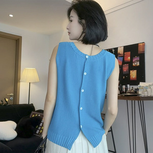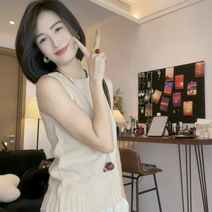 韩系圆领亚麻正反两穿薄款针织衫清冷松弛感穿搭马甲气质外穿上衣