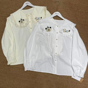 秋季衬衫新款韩版洋气长袖衬衣立体装饰娃娃领宽松休闲打底衬衫女