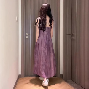 压褶扎染紫色吊带连衣裙女2025早秋新款西装外套休闲两件套A5783