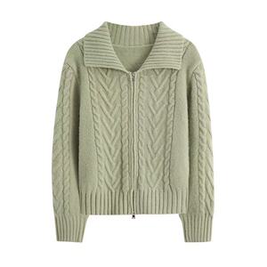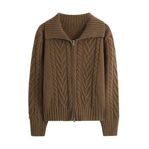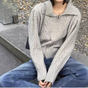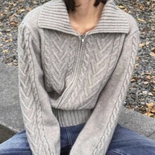 双拉链麻花圆领宽松毛衣女新款秋冬季慵懒风外穿打底衫内搭上衣