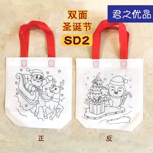 圣诞玩具无纺布涂鸦袋儿童生日派对DIY新年礼品绘画涂色袋手工