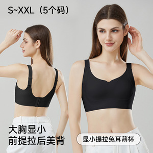 大胸显小内衣女全罩杯防下垂兔耳朵无痕胸罩跨境胖MM欧码大胸文胸